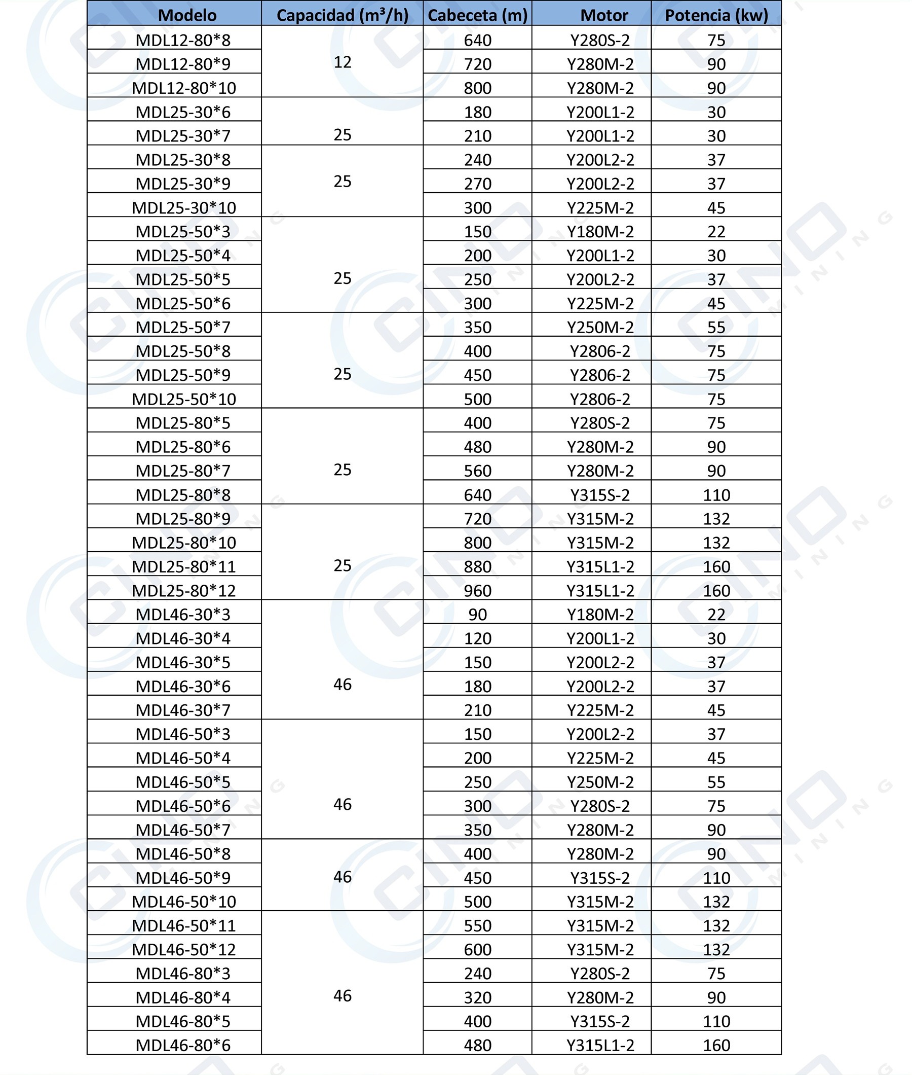 Bomba Centrífuga Multinivel MDL – Diseñada para el bombeo de agua en minas de carbón, con alta resistencia al desgaste y larga vida útil. Ideal para entornos con partículas sólidas inferiores al 1.5% y diámetros menores a 0.5 mm.